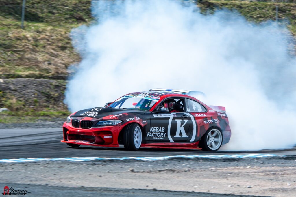 Joona Waronen gjorde tävlingsdebut i verklig drifting. Han har varit framgångrik inom SIM-driftingen och tävlar under Black Smoke Racings flagg med en nybyggd Mercedes Benz 190 i Evo II utförande, naturligtvis med en diesel-sexa under huven. Hur gick det då för honom? Jo, han klippte till med en blygsam 92 poängsrepa i sitt första kval någonsin! Ytterst imponerande. Detta räckte till en tredjeplats i kvalet.