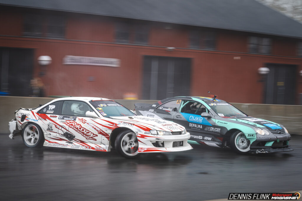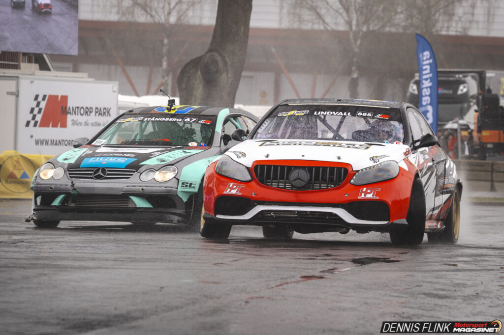 I ”the battle of the Mercs” mellan Mårten Stångberg och Felix Lindvall så var båda mycket taggade. Med rejält med skönsång och anti-lag så ylade maskinerna runt banan i full attack. Trots en närkontakt av Mårten i sin chase i den nedre och utmanande zonen så höll de båda förarna en bra runda på den blöta banan. När rollerna byttes så var det en lite större separation mellan de två och Mårten Stångberg fick chansen att fortsätta slåss vidare om vinsten.